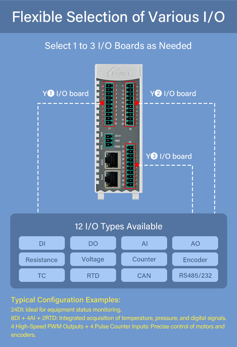- Modular hardware design → flexible I/O combinations