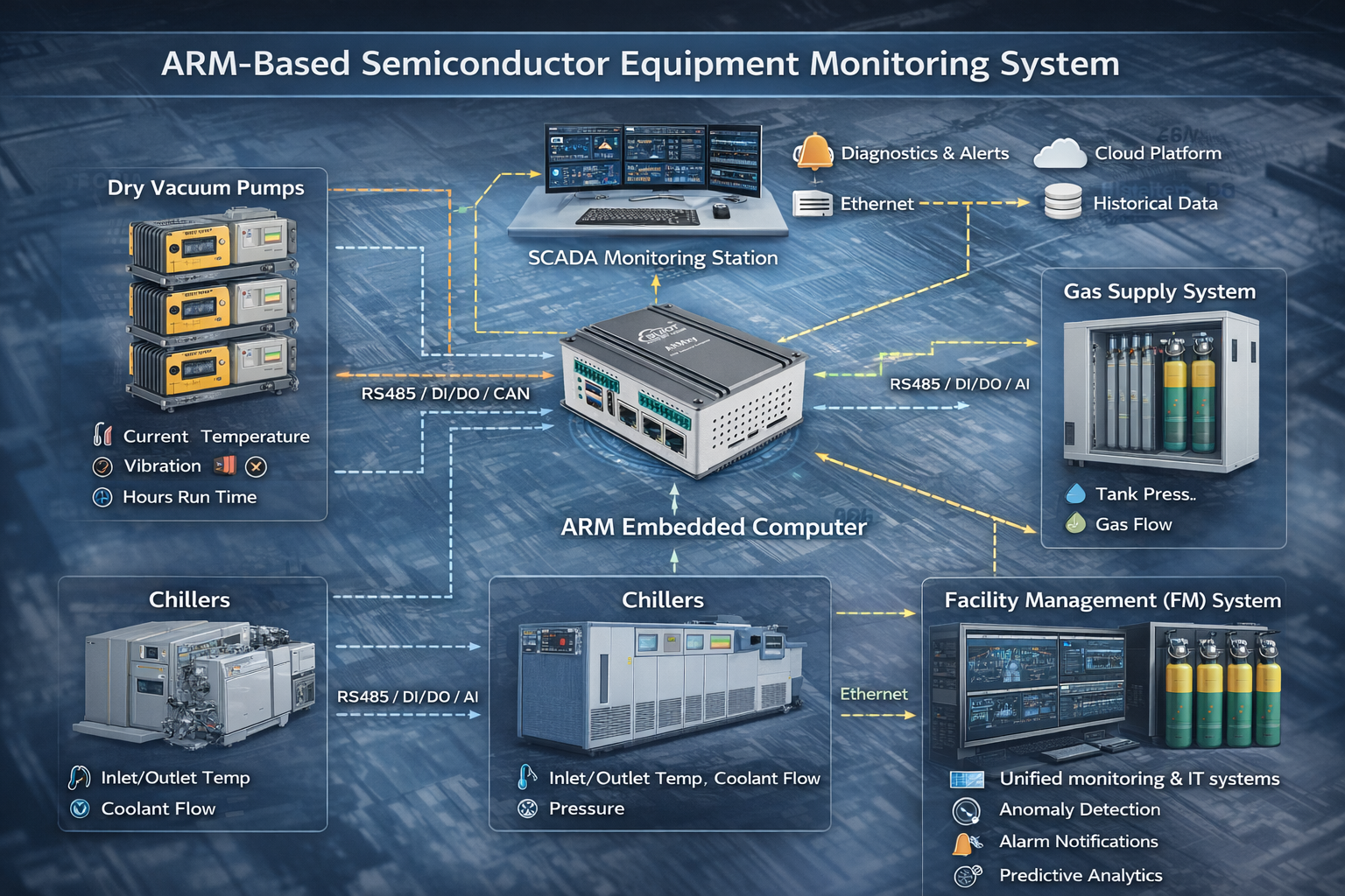 ARM architecture embedded computers excel in stability, flexibility, low power consumption, and industrial-grade reliability, making them an ideal platform for semiconductor equipment monitoring. Industry examples from vendors like Moxa, Advantech, and Beilai highlight their deployment in fabs for edge computing and condition monitoring.