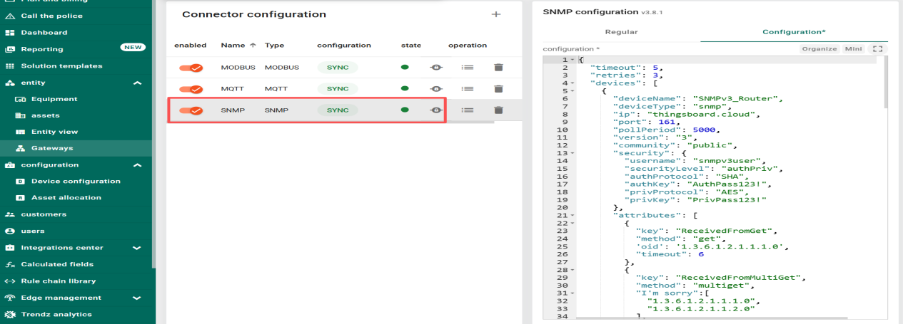 Step 3: Configure ThingsBoard Gateway (Implement SNMP v3 → MQTT Forwarding)