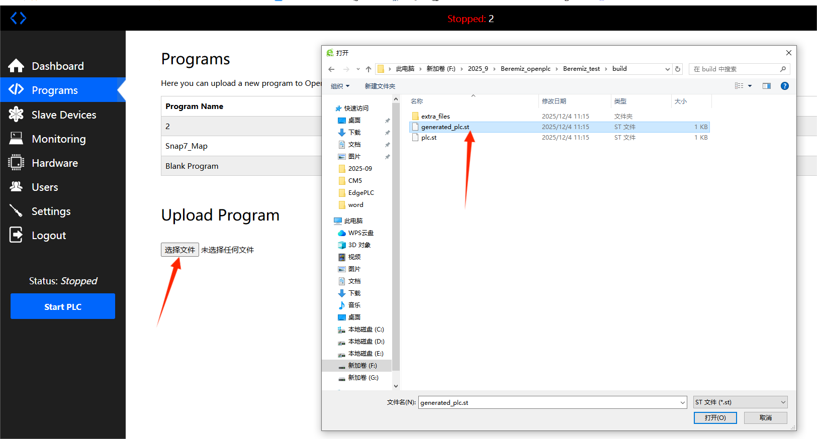 1.Since the default file name used by our OpenPLC client is different from the default file name generated by Beremiz, you need to modify the default file name generated by Beremiz first.