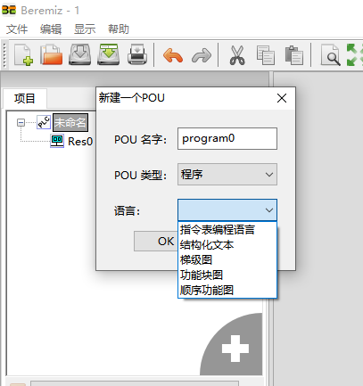3. Select the programming language you need to use (taking the ladder diagram as an example)