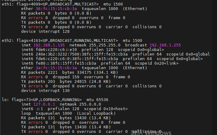1. Ensure that the device is connected to the network cable and has obtained the correct IP. Enter ifconfig to check the current IP of the device, for example